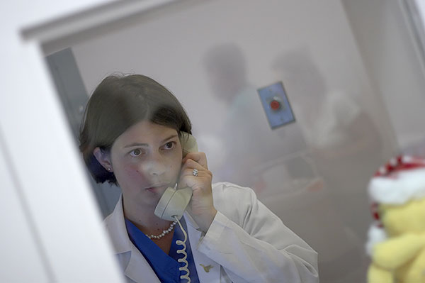 Monday 4:16pm As the on call resident, Hillary Ryder, MD has been paged to a code blue (unconscious patient) emergency. The patient has had a cardiac arrest and Ryder is explaining the tenuous situation to a family member.